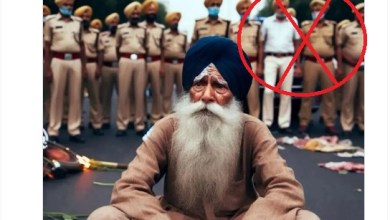 Image of moist-eyed farmer sitting in protest on smooth road surrounded by policemen goes viral; Fact Check