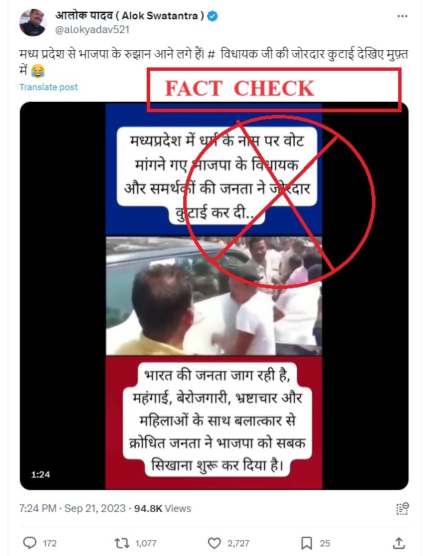 BJP MLA assaulted in Madhya Pradesh for asking votes in the name of religion? Fact Check