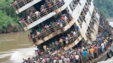 Did this overcrowded multi-deck boat lose balance and sink in river? Fact Check