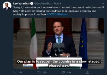 A quick Google keyword search landed us on articles and reports from the United Kingdom. A report by Reuters states how Ireland had announced small steps to ease restrictions and gradually open up the economy. We checked the official website for the Government of Ireland and found out that the government has come out with a “Roadmap for Reopening Society and Business” which will be effective from May 18, 2020. This roadmap was published by the Irish government on their website on May 1, 2020.