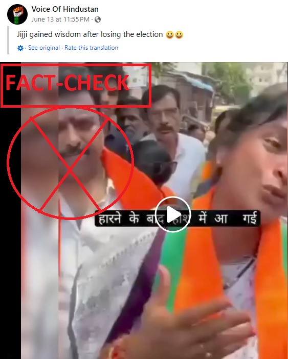 During the campaign, Madhavi Latha faced criticism for her anti-Muslim remarks and her appearance at a booth where she demanded female Muslim voters to lift their burqas and show their identity. The latest video claimed that there is a change in her rhetoric after the defeat. The claim attributed a statement to her as stating, “Indian Muslims cannot be terrorists”. The caption in Hindi stated:”चुनाव हारते ही जिज्जी को अकल आ गई” [Translated into English, it reads: “She gained wisdom after losing the election”]