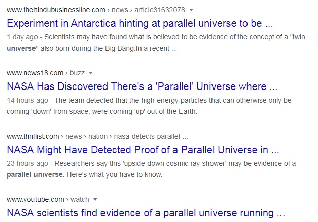 All the news outlets claimed that NASA has discovered this parallel universe and here are some results on Google search: