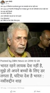 The Dainik Bharat (DBN Link removed now but evident from the Facebook screenshot) story soon went viral online, and many social media users lashed out against Shah for making such derogatory remarks about the country in which he lives in. Some of them cried foul and asked him to leave India and go to Pakistan. However, many of these allegations were exaggerated and the ace actor has never made those remarks, and even the news article published in Dainik Bharat is deleted now.