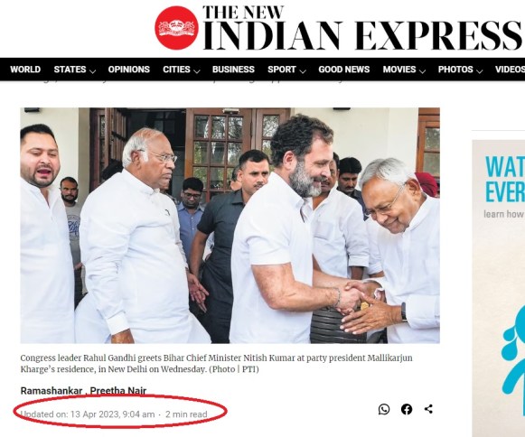 One such involving the JD(U) leader Nitish Kumar as shown above is being shared on social media with a claim that he was meeting the INDIA bloc leaders. The claim reads in Hindi:”नितीश कुमार बाबू दिल्ली पहुंचे और इन्डिया गठबंधन के सम्मानित हाई प्रोफाइल लीडर से मुलाक़ात की एवं चन्द्र बाबू नायडू जी से भी इंडिया गठबंधन के शीर्ष नेतृत्व से बात चल रही है जन नायक श्री राहुल गांधी जी ने कहा था लिख कर रख लो 2024 में मोदी प्रधानमंत्री नही बनेगा” [Translated into English, it reads: “Nitish Kumar Babu reached Delhi and met respected high profile leaders of India Alliance and Talks are also going on with the top leadership of India Alliance with Chandra Babu Naidu ji People’s leader Shri Rahul Gandhi had said that write it down, Modi will not become the Prime Minister in 2024.”