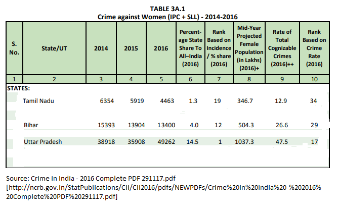 According to the latest report released by the National Crime Agency, which lists atrocities against women, especially, dowry harassment cases, which are much higher in Uttar Pradesh and Bihar than in the southern states of India. See the table below: