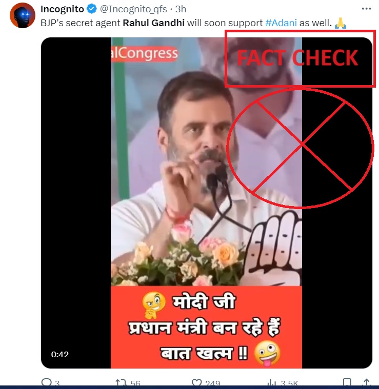 Claim: Video shows Rahul Gandhi saying Modi to become PM again.