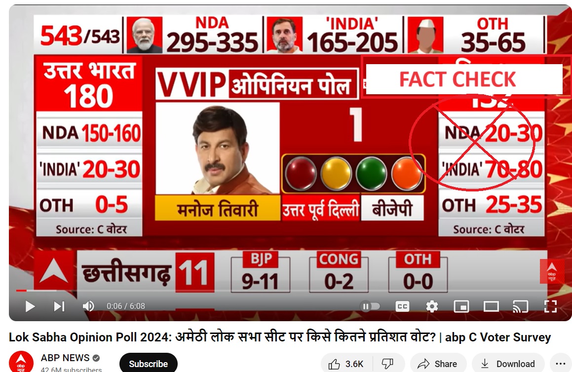 Hence, the old survey graphic was edited and shown as latest to predict INDIA bloc gaining majority seats.