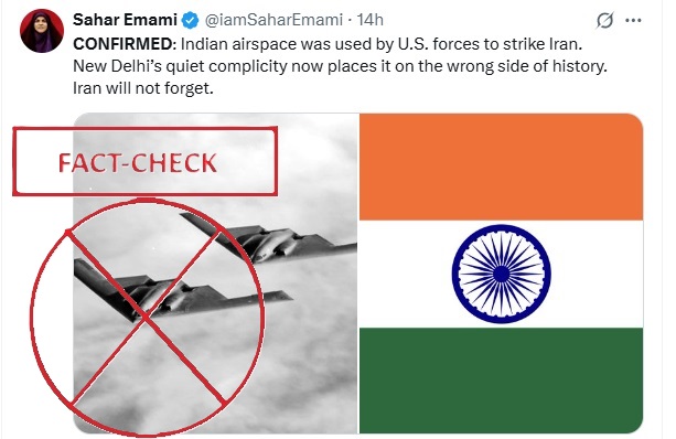 Shared here, these social media posts said, “CONFIRMED: Indian airspace was used by U.S. forces to strike Iran.