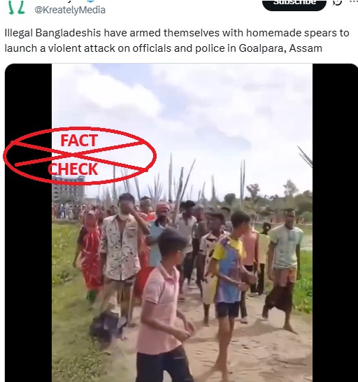 Verified X user ‘KreatelyMedia’ shared this clip on 5 August 2025 which has gained around 52,000 views. The caption of the post read : “Illegal Bangladeshis have armed themselves with homemade spears to launch a violent attack on officials and police in Goalpara, Assam”. Find the link to the tweet here