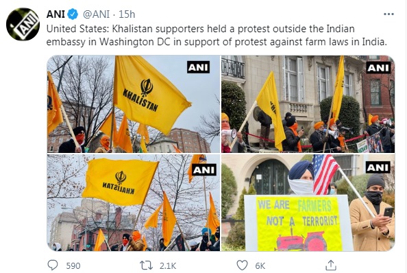 Though Khalistani flag has a similar symbol, it goes with the wording Khalistan as seen below in some of the protests held in Washington DC in front of the Indian Embassy.