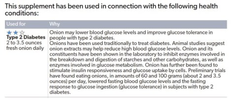 While some reports published by Peace Health suggests that onion extracts show modest blood sugar reductions in Type 2 diabetics, nothing is said about isolated glucokinin. It says: “ Onion has further been found to stimulate insulin responsiveness and glucose uptake by cells. Preliminary trials have found eating onions, in amounts of 60 and 100 grams (about 2 and 3.5 ounces) per day, lowered fasting blood glucose levels and the fasting response to glucose ingestion (glucose tolerance) in subjects with type 2 diabetes.”