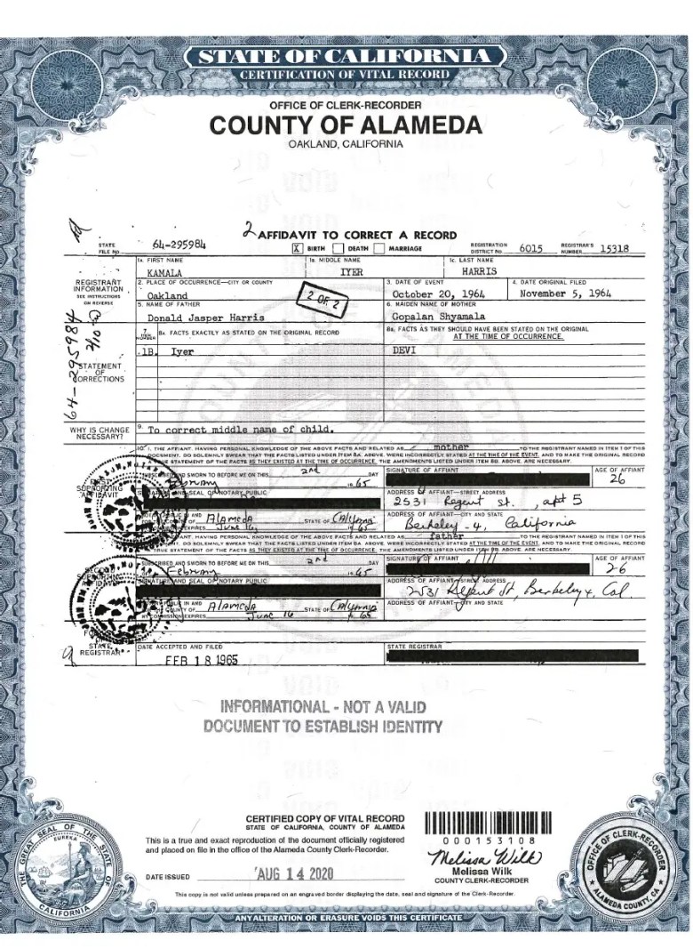 The claim says, “Her (Kamala’s) father was a Jamaican national, her mother was from India, and neither was a naturalized U.S. citizen at the time of Harris’ birth in 1964… That, makes her not a “natural born citizen” — and therefore ineligible for the office of the President.”