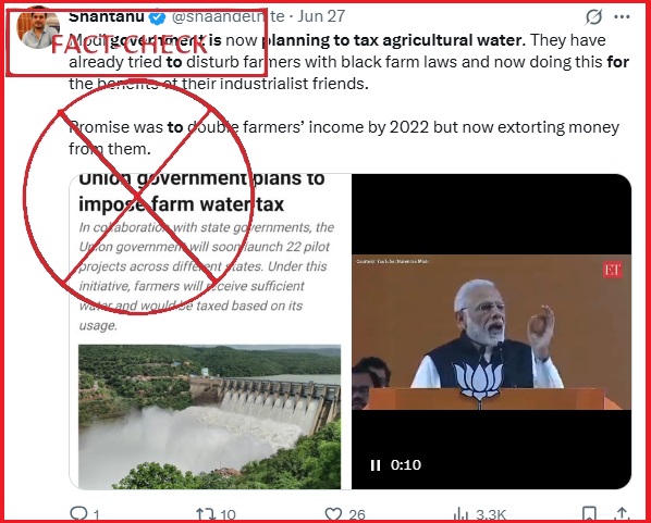 Several social media posts claim that the Union Government is planning to impose a tax on water usage for agricultural purposes #PIBFactCheck: