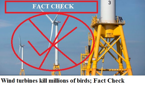 Conclusion: Partly true but the percentage is far less than other factors which kill birds. New technologies to safeguard birds from turbines are successfully tested or being tested as the wind energy is the green future among renewable energy sources, especially when fossil fuels contribute to global warming and climate change.