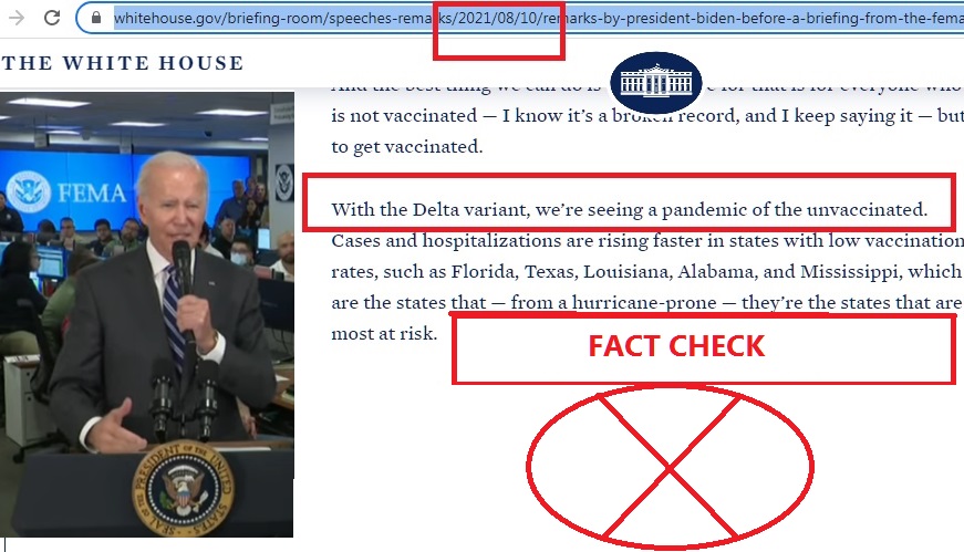 When we checked, owing to the obvious irrelevance to the link between a hurricane and a Covid vaccine, the original video was traced in Youtube that was uploaded more than a year ago and it was made when the Delta variant Covid-19 was spreading rapidly. To be precise, the speech was made by Biden on August 10, 2021 — during that year’s hurricane season and an influx of Covid-19 cases of the Delta variant and not now as per the claims.