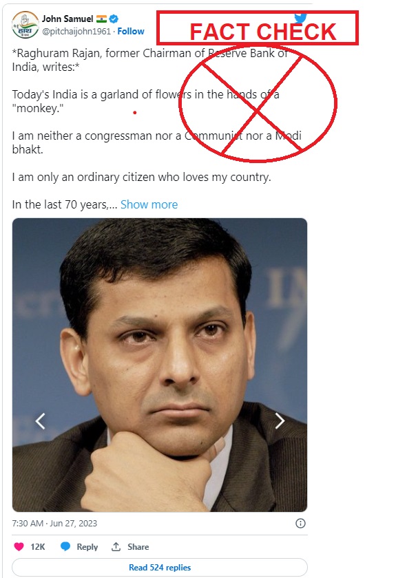 There is no other news item or official statement from Rajan on Twitter or LinkedIn on the lines made in the latest criticism about the Modi government. Hence, the viral post is fabricated and being falsely attributed to Raghuram Rajan.