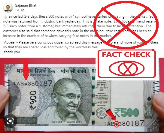The claim on Facebook post reads: “Since last 2-3 days these 500 notes with * symbol have started circulating in the market. Such a note was returned from IndusInd Bank yesterday. This is a fake note. Even today, a friend received 2-3 such notes from a customer, but immediately returned them due to lack of attention. The customer also said that someone gave this note in the morning. Take care. There has been an increase in the number of hawkers carrying fake notes in the market. Appeal: Please be a conscious citizen… spread this message to more and more of your brothers, so that they are spared loss. Thank you.”