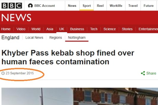 On doing a keyword search on Google, we found out that the incident happened in 2015 and not now. Mohammad Abdul Basait and Amjad Bhatti, both from Derby, owned a restaurant by name Khyber Pass in Hyson Green, Nottingham. The meals provided from this kebab shop had infected 150 people. The people had fallen severely ill “after contracting a E.coli in a filthy takeaway where staff did not wash their hands after going to the toilet,” said Mirror in its 2015 report. This outbreak was believed to be the second of its kind in Europe.