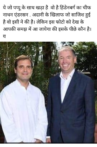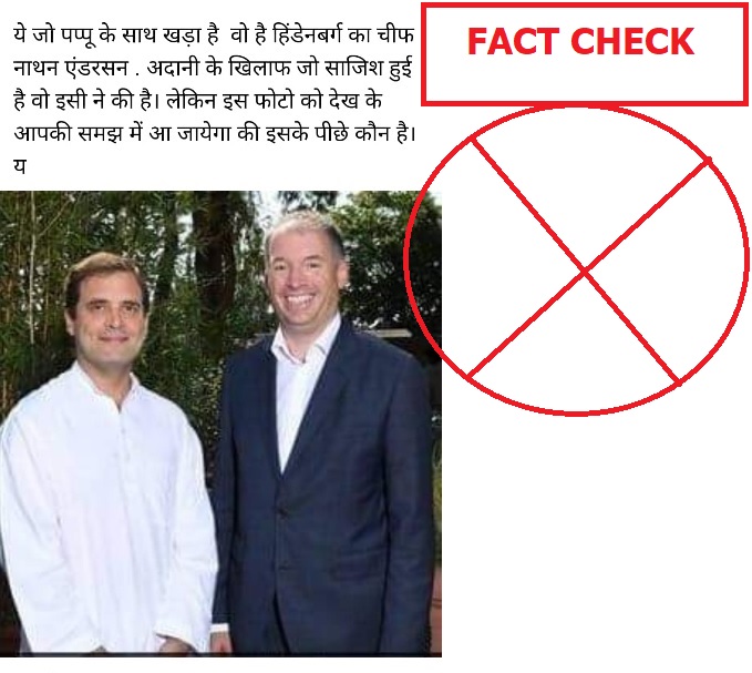 An image is being shared on social media showing Congress leader Rahul Gandhi with a German claiming that he was Nate Anderson, chief of Hindenburg Research, which had released its report alleging Adani group of “brazen stock manipulation and accounting fraud”.