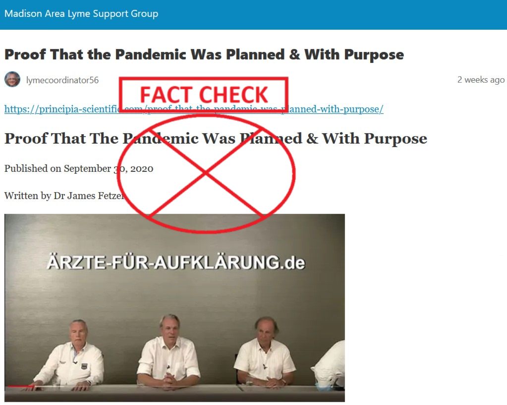Recently in late September, an article published on the Principia Scientific International claimed that the pandemic was pre-planned and was created with purpose. The exhaustive article has listed down points to base its claims. It was then shared by many and one such is the Madison Lyme Support Group.