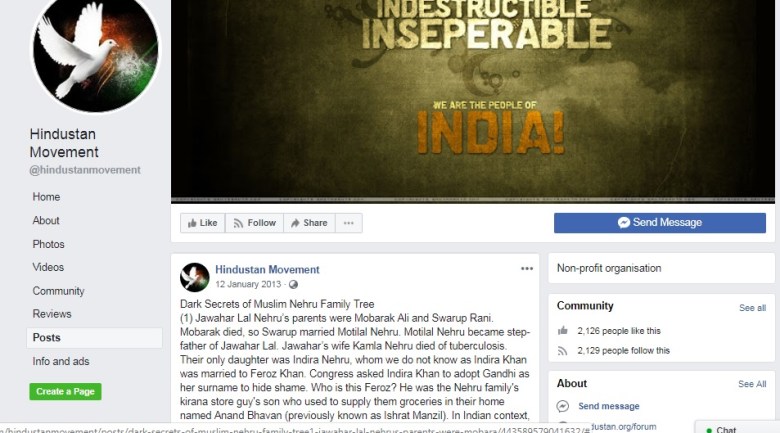 Here’s another one attacking the Nehru-Gandhi family. This blog has been claiming for over 7 years that the Nehru family was actually Muslims.  This message is on and off on Facebook, WhatsApp, Wordpress blogs and Twitter.