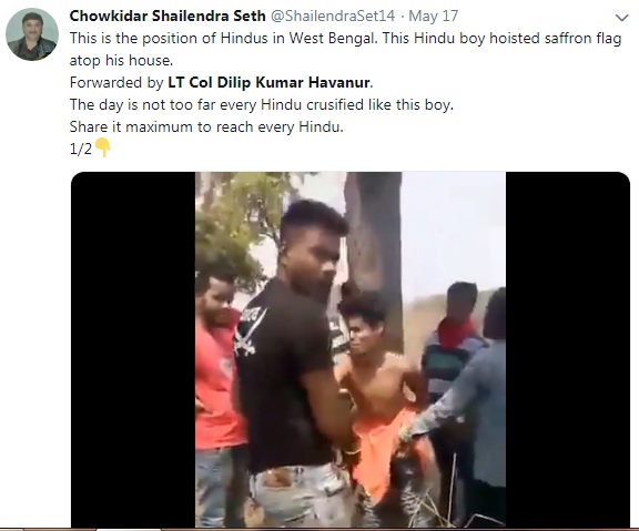 It was shared by one Mallesham Gonda @malleshamgonda on May 16 with a caption that read: “This is the position of Hindus in West Bengal. This Hindu boy hoisted saffron flag atop his house.”
