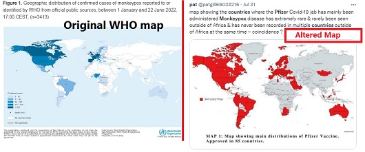 Thirdly, the map used in the claim was altered from the original WHO map published on June 27, 2022 with data as of June 22, 2022. Here’s a comparison of the original and altered maps: