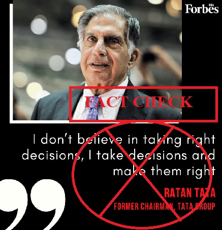 Recently a post on industrialist Ratan Tata is making rounds with a quote attributed to him. It reads: “I don’t believe in taking right decisions, I take decisions, then make them right – Great lines by Ratan Tata.”